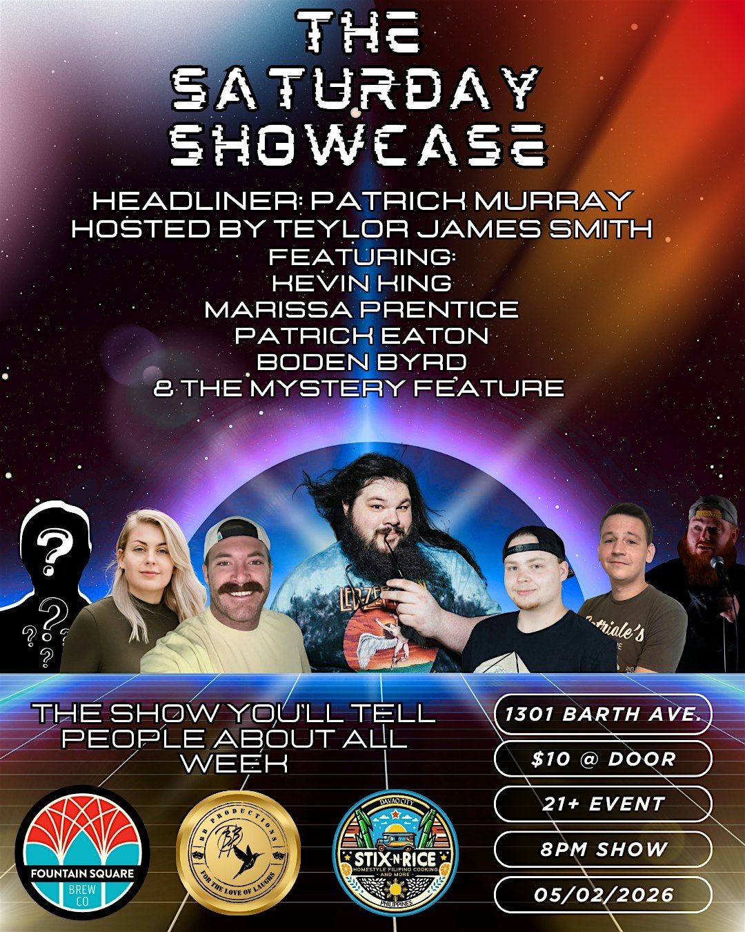 Headliner Patrick Murray and host Teylor James Smith round out and boost up the laughs while you enjoy some delicious beers and some excellent fillipino food + smash burgers from our food truck Stix N Rice!!!