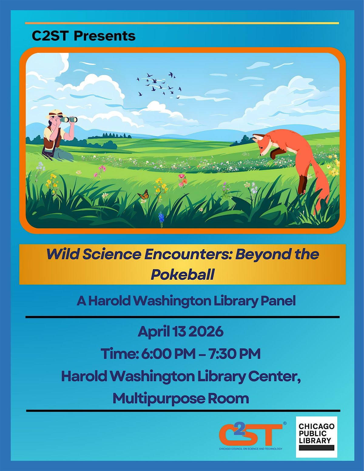 The Chicago Council on Science and Technology and Chicago Public Library present The Science of Pokemon! In the world of Pokemon, adventurous explorers - called Pokemon trainers - can travel far and wide, catching and cataloging fantastical creatures to fill out their Pokedex, a digital index of various pokemon species. While you can’t find a Pikachu in any of the viridian forests on Earth, Pokemon masters have a real-world counterpart in the form of scientists! Scientists can be found in every corner of the world, discovering new species and cataloging their unique characteristics. This real life data collection has become the foundation for the design of Pokemon themselves! We’ve brought a panel of experts from across the sciences to talk to us about the real-life plants and animals that Pokemon are based on. If you’ve ever wanted the chance to have a conversation with Professor Oak, this is the next best thing! We’ve gotta catch them all!