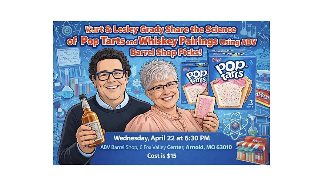 There is no doubt this is going to be one of our most unique events in the history of the ABV Barrel Shop. Kurt and Lesley Grady are simply whiskey fans. Like many whiskey fans, they enjoy science (there is so much science to whiskey) and having fun. When Lesley had a hunch Pop Tarts might go with whiskey, the two of them went down a rabbit hole of cataloging Pop Tarts and whiskey pairings. Factors like toasted vs. non-toasted, what if you add butter, do certain mashbills make for better pairings, are there some pairings that make both the whiskey and the Pop Tart better?