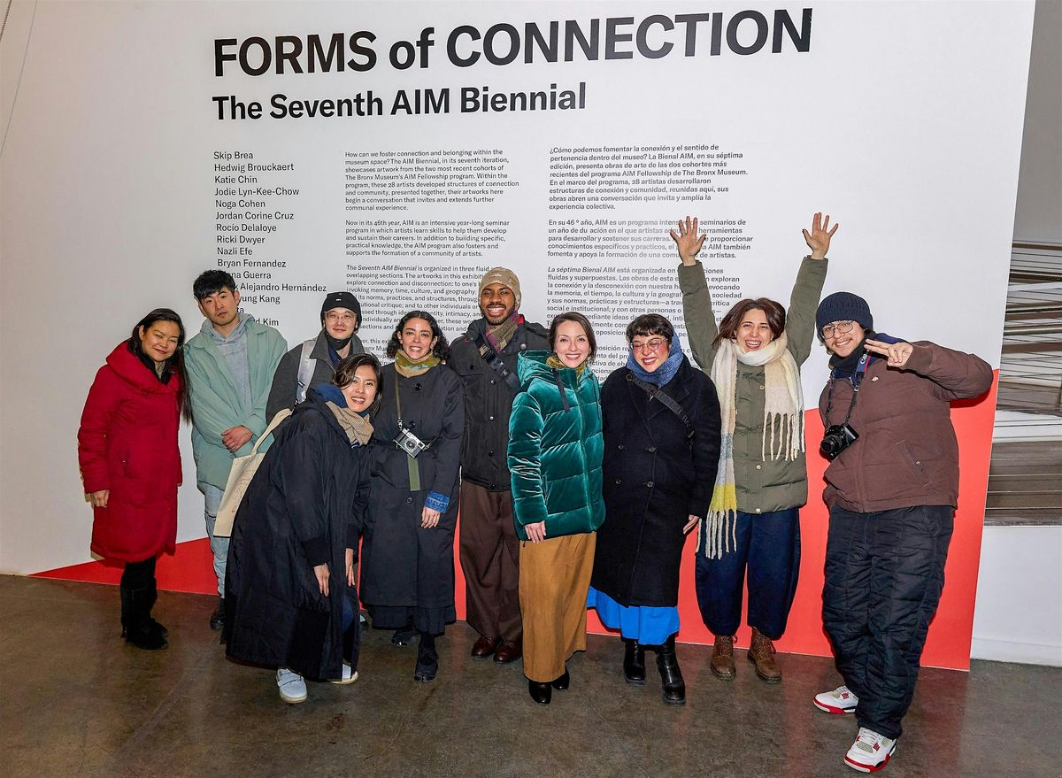 Top Image: From left to right—Eileen Jeng Lynch, Director of Curatorial Programs, and Seventh AIM Biennial exhibiting artists Sangmin Lee, V Yeh, Leekyung Kang, Jill Cohen-Nuñez, Cyle Warner, Massiel Mafes, Jennifer Teresa Villanueva, Nazli Efe, & Piero Penizzotto, Photo by Argenis Apolinario, 2026.