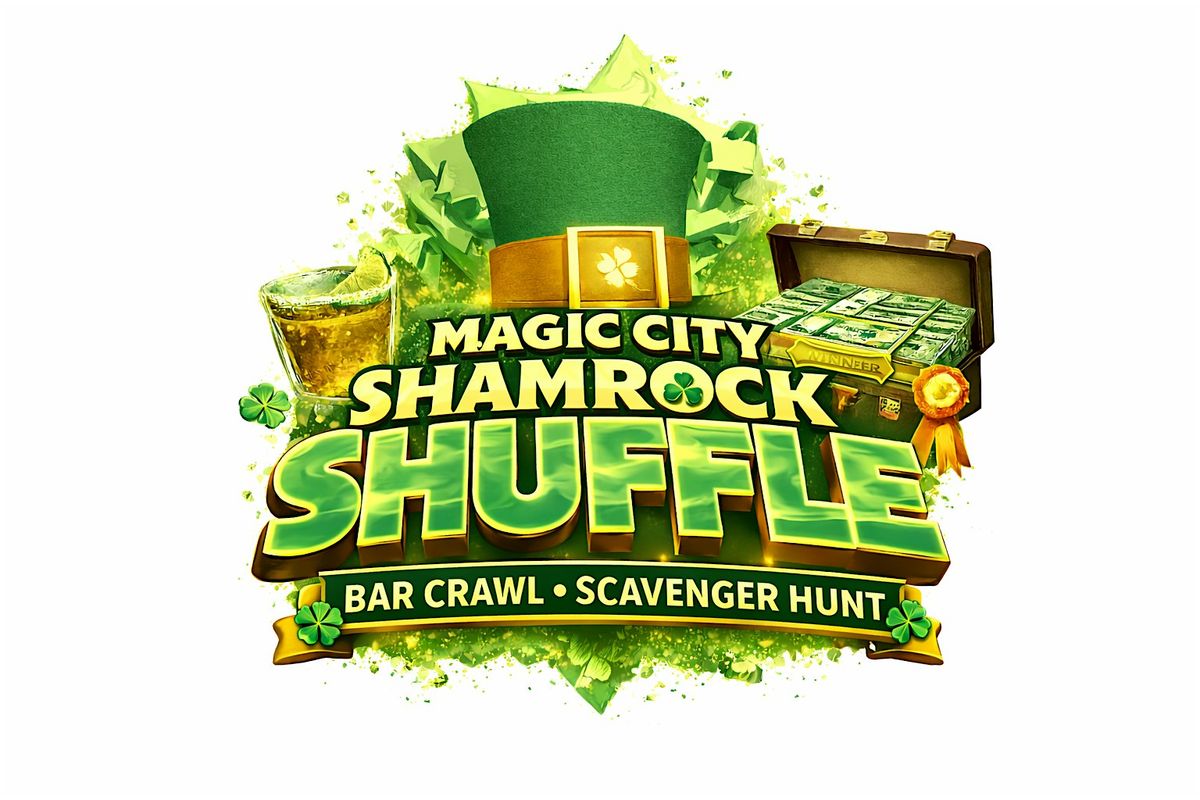 The Shamrock Shuffle is a competitive bar crawl + scavenger hunt where teams travel between official bar stops, unlocking clues by ordering drinks and saying the secret password.