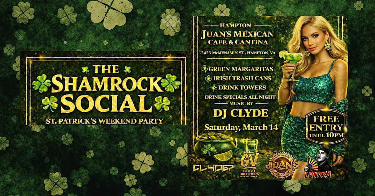 Get ready for one of the biggest St. Patrick's celebrations in Hampton! Join us at Juan's Mexican Cafe & Cantina for a night full of green drinks, great music and unforgettable vibes.