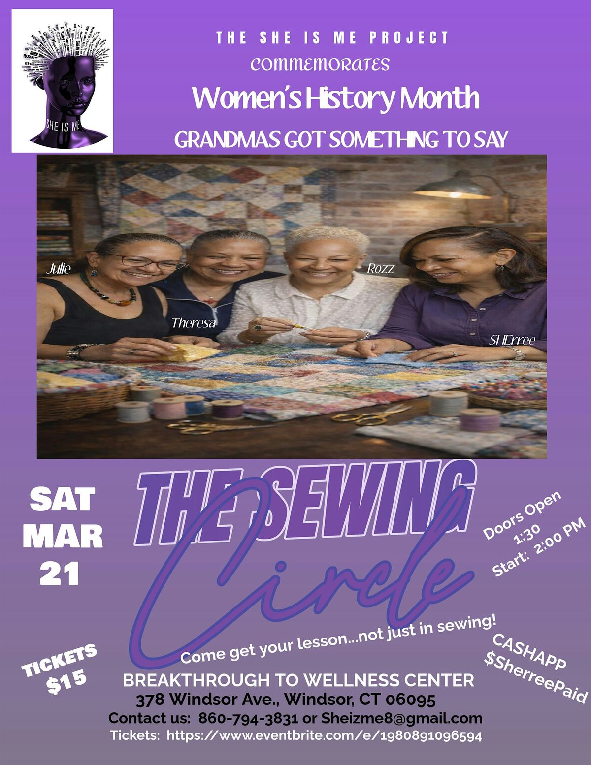 The She Is Me Project will commemorate Women's History Month by focusing on grandmothers! The audience will have the privilege of listening in on a sewing circle where grandmothers often share their thoughts and opinions on everything from their grandchildren to their spirituality and religion. No topic is taboo for this group of wise and outspoken women. You don't want to miss this opportunity to gain priceless insight, understand the importance of trust among friends, and experience a bit of cultural history.