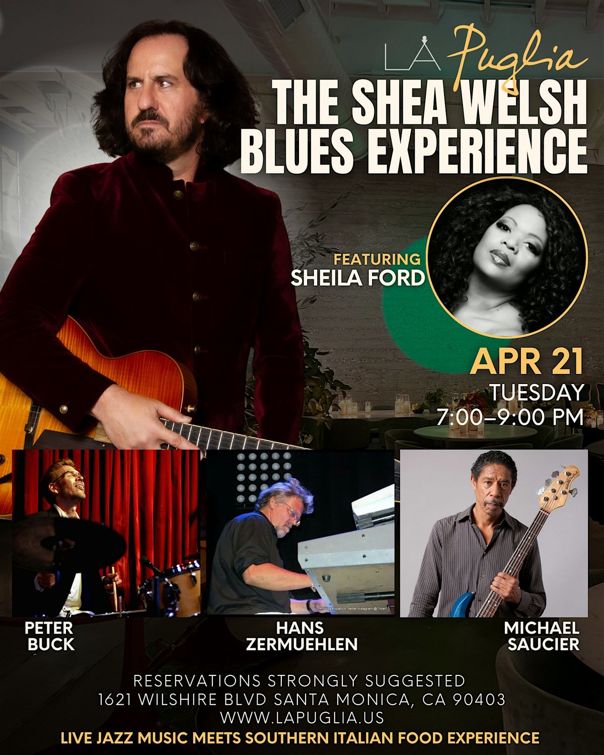 Featuring Vocalist Sheila Ford, Shea Welsh on Guitar & Vocals, Peter Buck on Drums, Michael Saucier on Bass, Hans Zermuehlen on Keys.