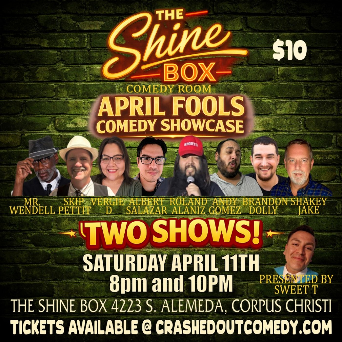 April Fools Comedy Showcase will feature a powerhouse group of local favorites and rising comics who have been lighting up stages across South Texas. No filler, no weak spots, just straight killers from start to finish.