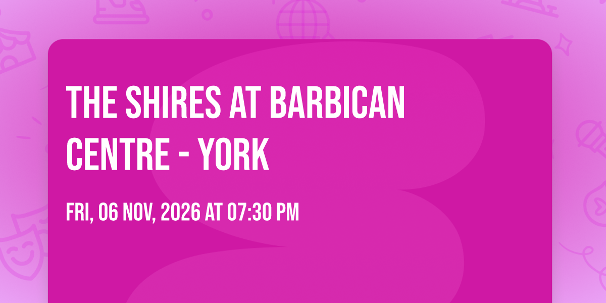 🌟 Step into a world of wonder at The Shires at Barbican Centre - York, where extraordinary moments await! 🏛️ Located at Barbican Centre - York in dynamic York, EN, this event will become the talk of the town. 📅 Join us on November 6th, 2026 at 07:30 PM for a celebration that defies the ordinary. ✨ This curated experience brings together the best of entertainment, culture, and community spirit. Every detail has been thoughtfully planned to ensure an unforgettable experience for all our guests. 🎯 Take advantage of this opportunity to be part of something special. 🎊 Early registration is recommended as space is limited!