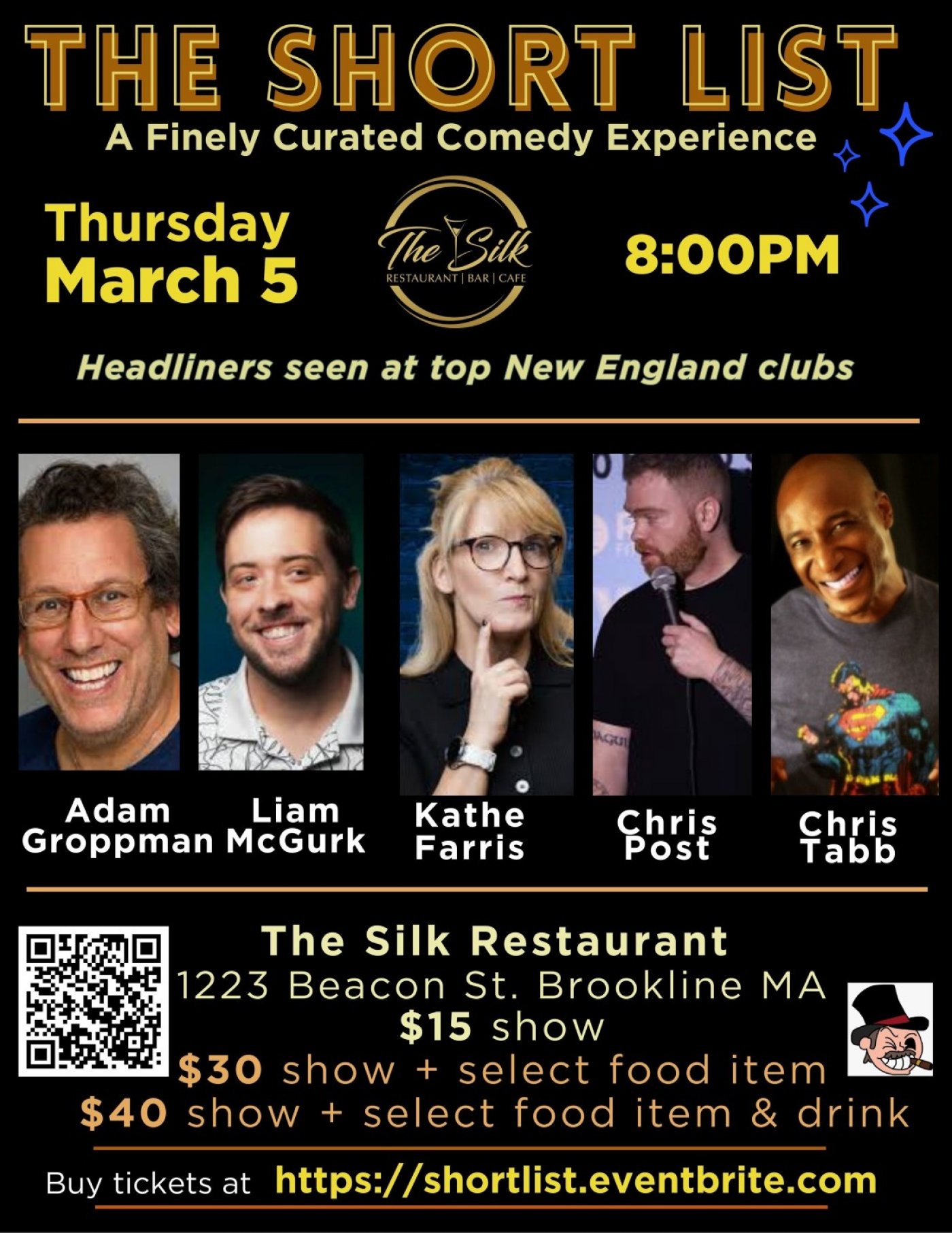 Set within the refined and intimate surroundings of The Silk, Brookline’s acclaimed nouvelle-Indian dining destination just steps from Coolidge Corner, this special evening offers an exceptional blend of elevated cuisine and premier live comedy.