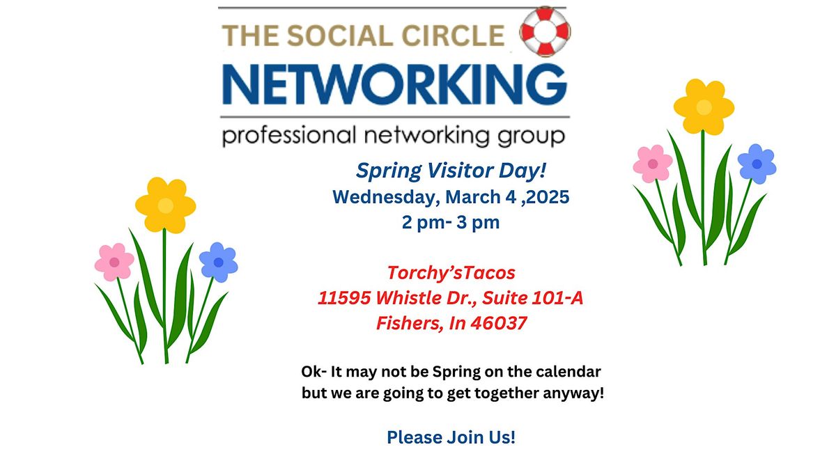 Welcome to The Social Circle Networking Group's (almost) Spring Visitor Day on Wednesday, March 4, 2026, at Torchy's Tacos in Fishers from 2- 3 pm!