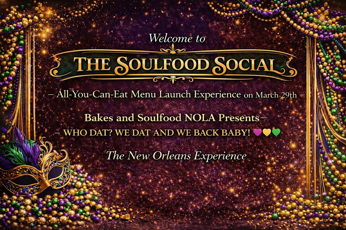 You’re officially invited to The Soulfood Social — Bakes & Soulfood NOLA’s All-You-Can-Eat Menu Launch Experience on March 29th!