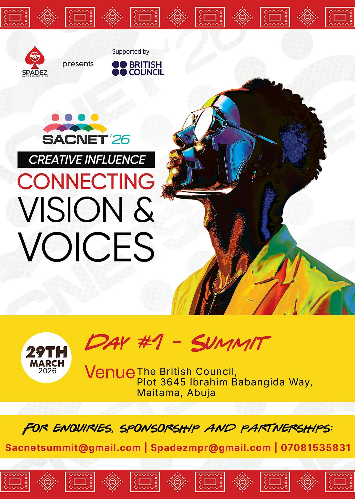 The Spadez Artist & Creative Network Summit (SACNet) is a flagship initiative of Spadez Management and PR Limited in collaboration with the British Council, created to unite Africa’s most promising creative minds on one powerful platform for collaboration, visibility, and transformation.