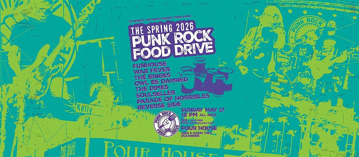 #punkrockfooddrive #spring2026punkrockfooddrive #funhouse #warfever #paradeofhorribles #thedimes #thebinges #owlbedamned #reverseside #visionsmusicacademy #soulseller #northcountyfoodbank #pourhouseoceanside #sandiegofoodbank