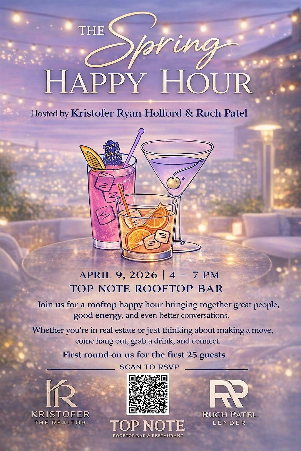 Hosted by Kris Holford and Ruch Patel, this elevated happy hour experience will take place at Top Note’s rooftop, offering the perfect backdrop to unwind, connect, and enjoy the city.