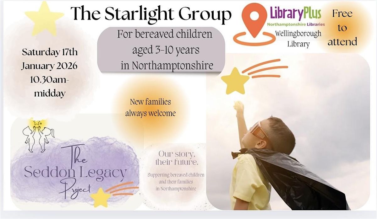 The Starlight Group resumes in 2026. A peer support group for bereaved children, ages 3-10 years.