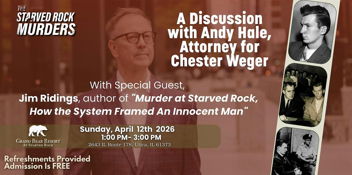 As longtime legal counsel for Chester Weger, Andy Hale will revisit the case in depth, examining the original evidence, newer developments, and the forensic findings that continue to raise questions decades later. This special event will also feature Jim Ridings, author of M**der at Starved Rock: How the System Framed an Innocent Man, who will bring additional insight into the case and its lasting significance.