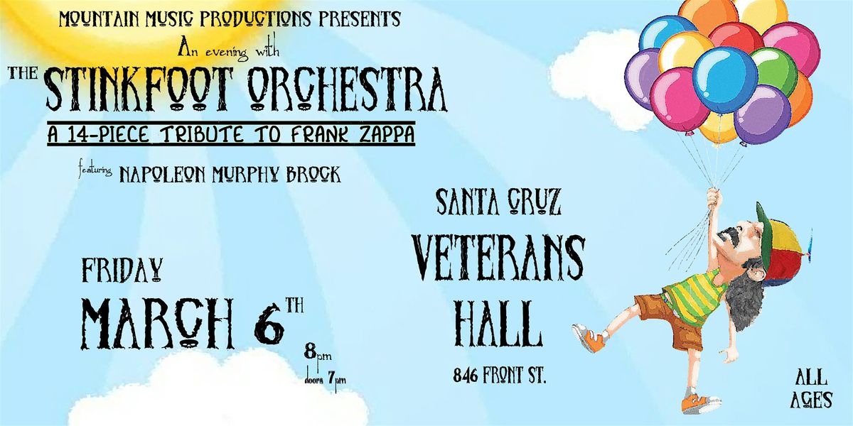 Get ready to groove, laugh, and be blown away by The Stinkfoot Orchestra's incredible musicianship at the Santa Cruz Vets Hall on Friday, March 6th, 8:00 pm.