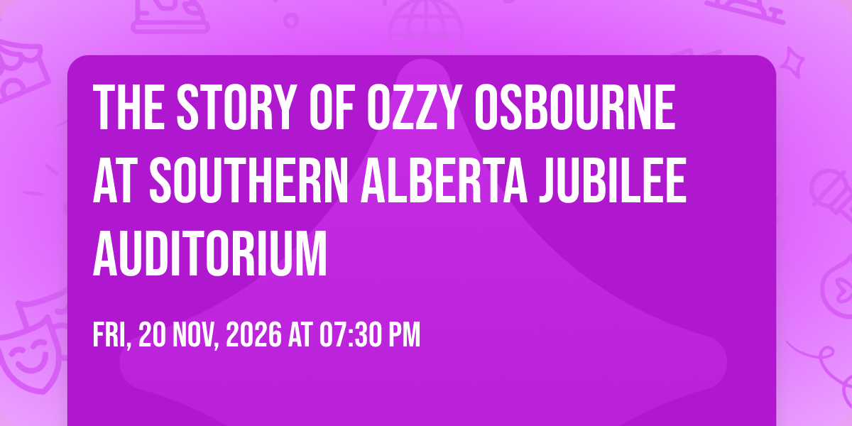 β¨ Enter a world of endless possibilities at The Story of Ozzy Osbourne at Southern Alberta Jubilee Auditorium, where every moment tells a story! ποΈ The stunning Southern Alberta Jubilee Auditorium in vibrant Calgary, AB transforms into a realm of wonder on November 20th, 2026 at 07:30 PM. π They have crafted an experience that goes beyond the ordinary, combining elements of surprise, delight, and pure entertainment. Every detail has been thoughtfully considered to ensure your journey with us is nothing short of extraordinary. π― Join fellow adventure seekers and memory makers in this celebration of imagination and innovation. π Reserve your spot today and be part of something truly special!
