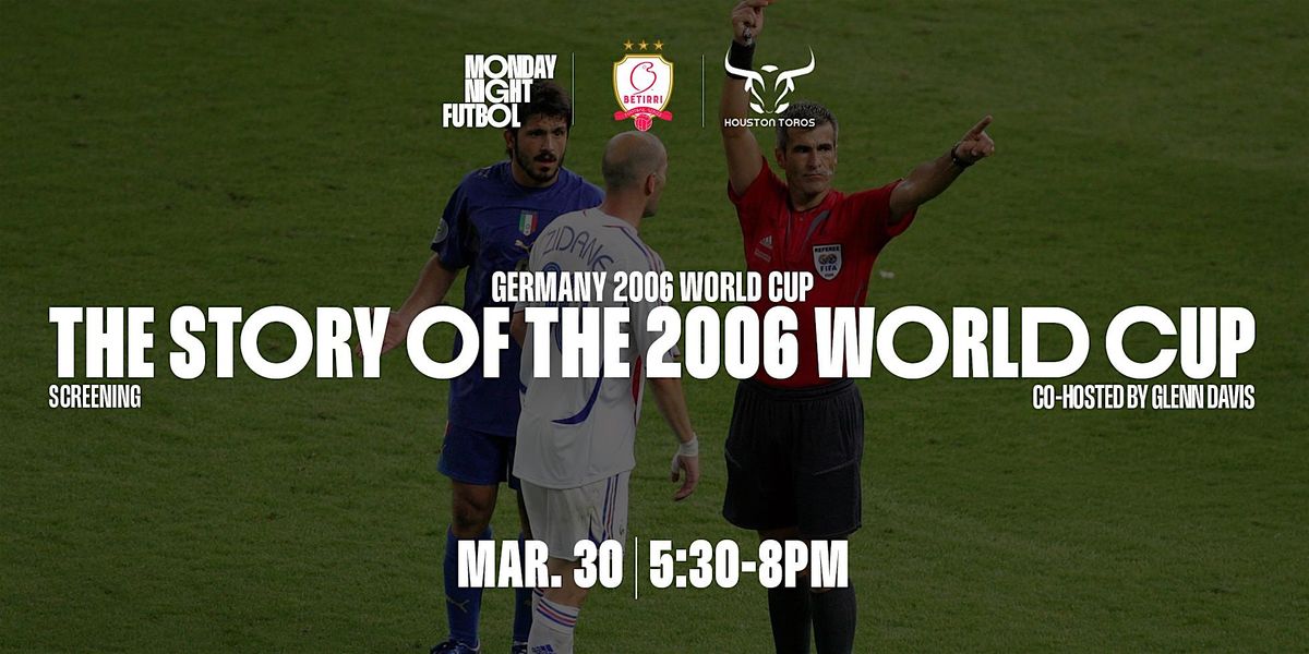 Join us for another Monday Night Futbol on Monday , March30th at Toros Lifestyle Soccer, to relive the 2006 World Cup.