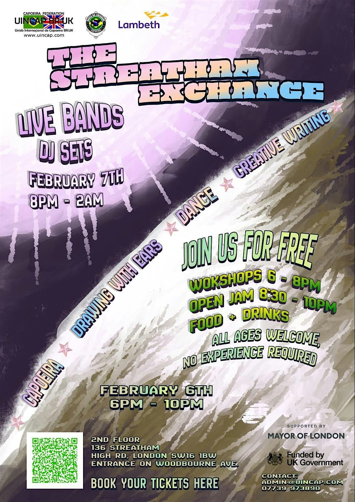 Streatham Exchange is an exciting community cultural event of workshops, performances, live DJs and an open jam - with food and drinks provided.