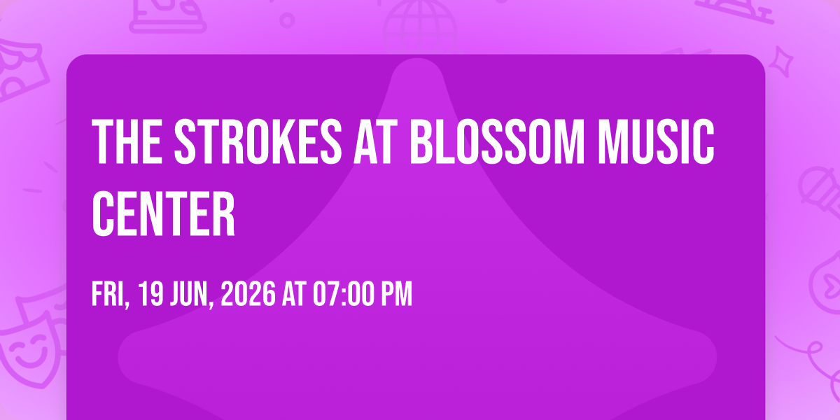 β¨ Embark on an extraordinary journey at The Strokes at Blossom Music Center, where every moment promises to be unforgettable! π Imagine of transforming Blossom Music Center in the heart of Cuyahoga Falls, OH into a realm of endless possibilities. π Join us on June 19th, 2026 at 07:00 PM for an experience that will challenge your imagination and exceed your expectations. π― This carefully curated event combines the finest elements of entertainment, innovation, and community spirit. Whether you're an adventure seeker, culture enthusiast, or someone looking for unique experiences, this event offers something special for everyone. π Don't miss this chance to be part of something extraordinary!