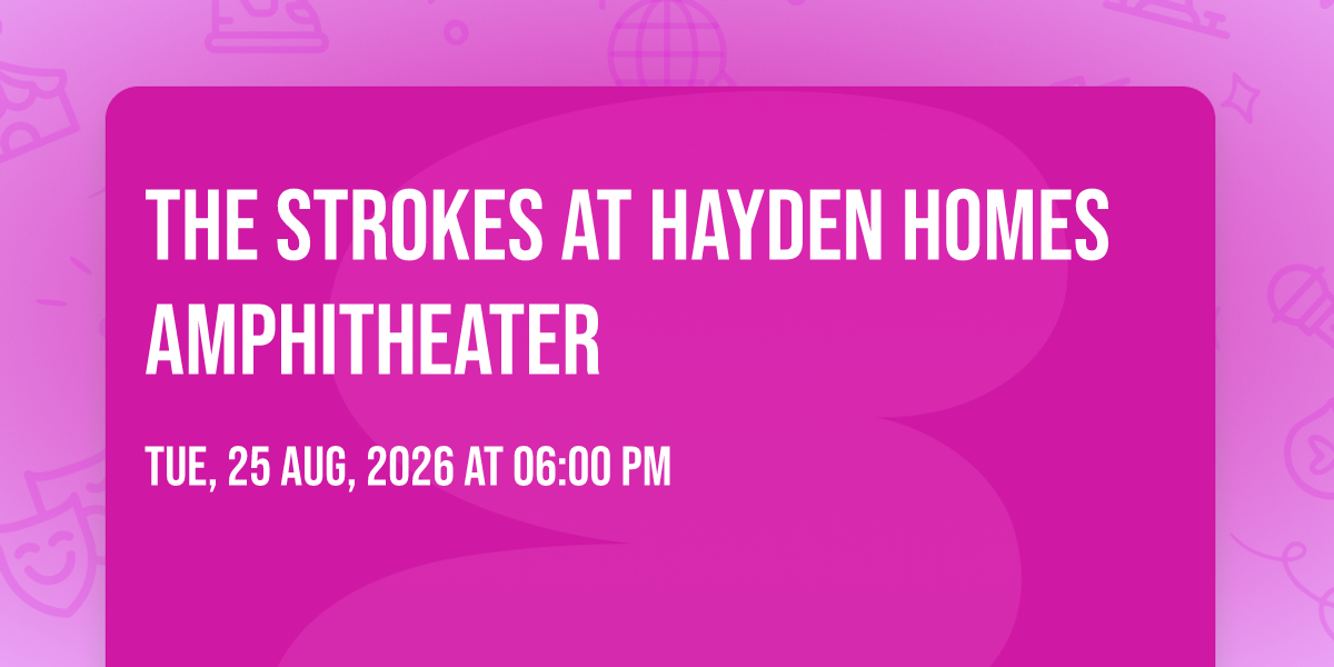 π Welcome to The Strokes at Hayden Homes Amphitheater, where the impossible becomes possible and dreams take flight! ποΈ Join us at Hayden Homes Amphitheater in the heart of Bend, OR for an event that will redefine your expectations. π On August 25th, 2026 at 06:00 PM, witness the transformation of space and time into something truly magical. β¨ It's a curated experience combining the best of innovation, entertainment, and community spirit, creating moments that will be remembered for years to come. Whether you're a first-time visitor or a seasoned enthusiast, prepare to be amazed. π Book now to ensure your place in this unforgettable experience!