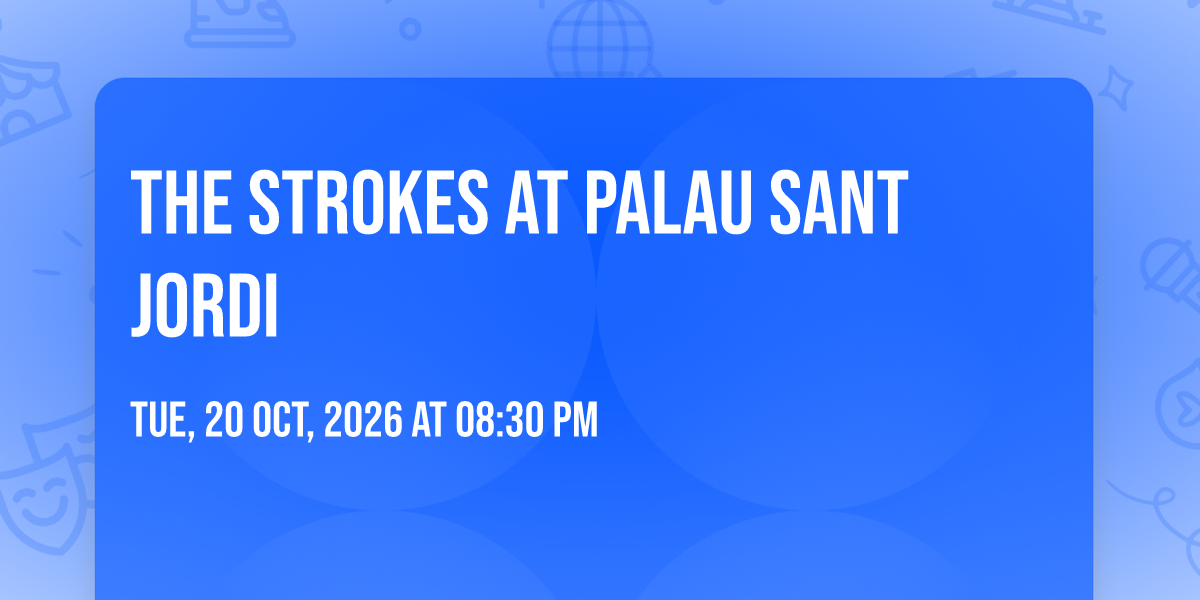 🌟 Step into a world of wonder at The Strokes at Palau Sant Jordi, where extraordinary moments await! 🏛️ Located at Palau Sant Jordi in dynamic Barcelona, CT, this event will become the talk of the town. 📅 Join us on October 20th, 2026 at 08:30 PM for a celebration that defies the ordinary. ✨ This curated experience brings together the best of entertainment, culture, and community spirit. Every detail has been thoughtfully planned to ensure an unforgettable experience for all our guests. 🎯 Take advantage of this opportunity to be part of something special. 🎊 Early registration is recommended as space is limited!