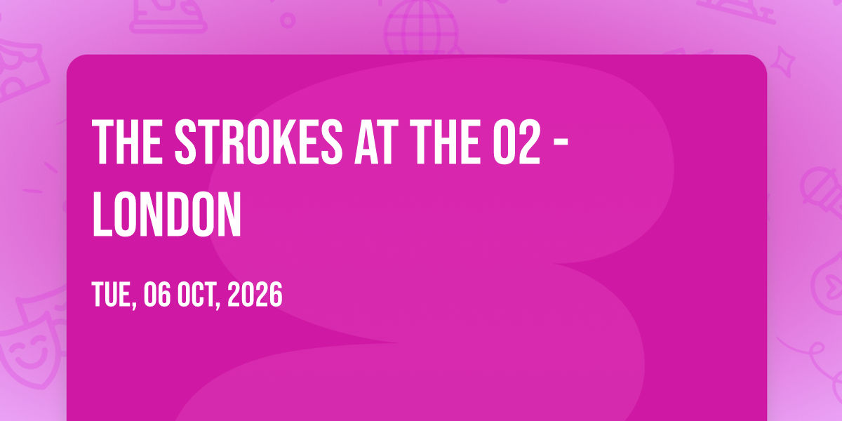 β¨ Embark on an extraordinary journey at The Strokes at The O2 - London, where every moment promises to be unforgettable! π Imagine of transforming The O2 - London in the heart of London, EN into a realm of endless possibilities. π Join us on October 6th, 2026 at 06:30 PM for an experience that will challenge your imagination and exceed your expectations. π― This carefully curated event combines the finest elements of entertainment, innovation, and community spirit. Whether you're an adventure seeker, culture enthusiast, or someone looking for unique experiences, this event offers something special for everyone. π Don't miss this chance to be part of something extraordinary!