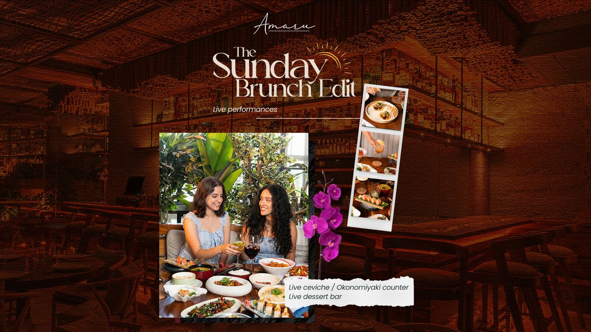 We’re Back with The Sunday Brunch Edit at Amaru.And it’s bigger, bolder, and better.Join us as we bring back our signature brunch experience — where vibrant flavours, curated cocktails, and live music come together to set the perfect Sunday mood.Indulge in live counters featuring ceviche or okonomiyaki on alternate Sundays, explore a decadent dessert bar, and sip on thoughtfully crafted cocktails designed to complement every bite.This is how Sundays are meant to be.Next brunch on 1st March.