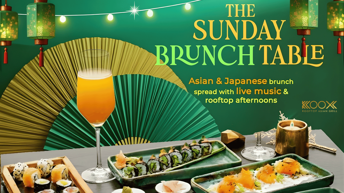 Sundays get a vibrant upgrade at KOOX Rooftop Asian Grill with The Sunday Brunch Table.Indulge in an Asian and Japanese brunch spread featuring sushi, small plates, and signature bites, all set against a breezy rooftop backdrop. With live music setting the mood and leisurely afternoon vibes, itβs the perfect way to turn your Sunday into a delicious celebration. π£π₯β¨