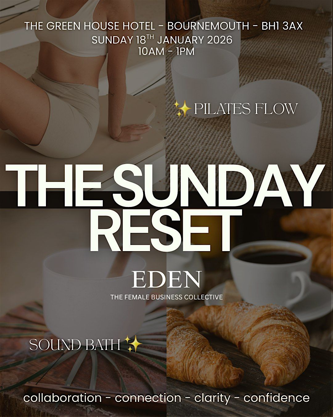 This wellness-focused Sunday brings together mindful movement through Pilates Flow, deep relaxation with a restorative sound bath, and meaningful connection over a nourishing wellness lunch. Thoughtfully curated goody bags complete the experience, offering little reminders to carry the reset with you beyond the day.