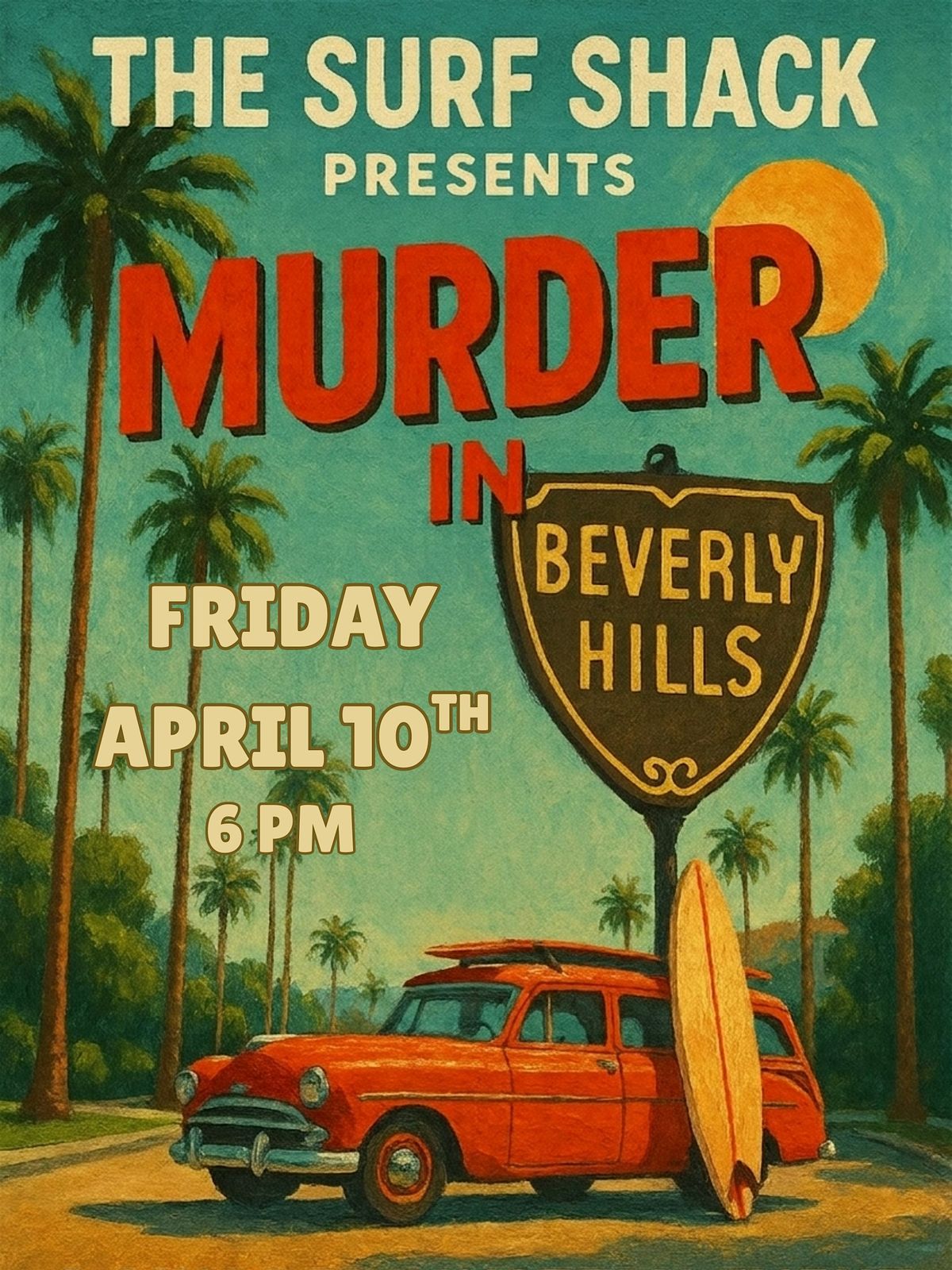 The worlds of laid-back surf culture and high-society glamour collide in this exclusive, immersive M**der mystery event! The Surf Shack is thrilled to host "M**der in Beverly Hills," an unforgettable evening where the drinks are cold, the stakes are high, and everyone is a suspect.