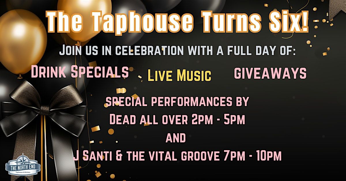Join us in celebrating Six fabulous years of The Northend Taphouse. We will be open from 2pm. Drink Specials, Live Music and Giveaways. Dead All Over will take to the stage at 2pm followed by JSanti and The Vital Groove at 7pm.