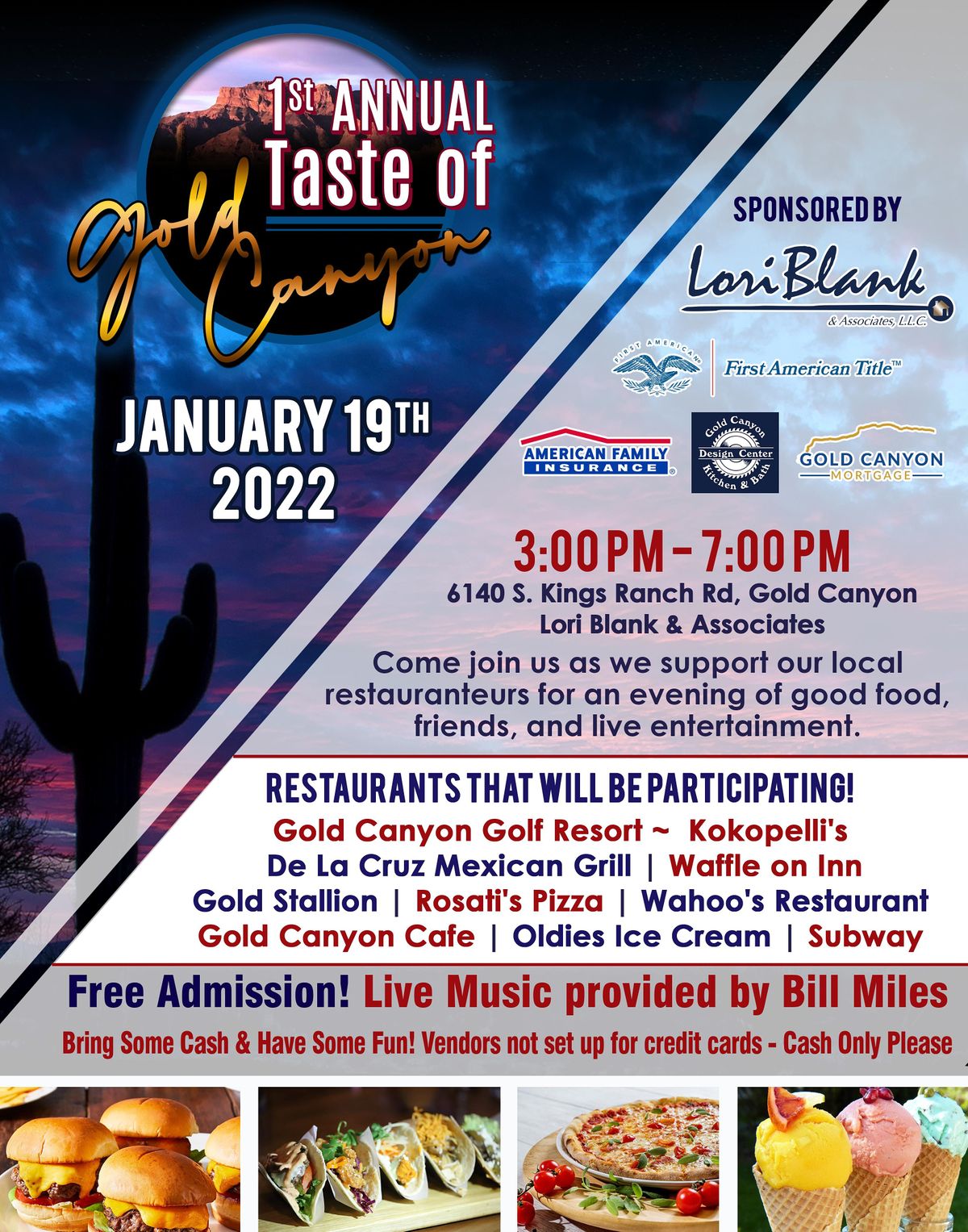 FREE Event! The Taste of Gold Canyon - Come out for some live entertainment while tasting some classic fair our local restaurants offer!About this Event