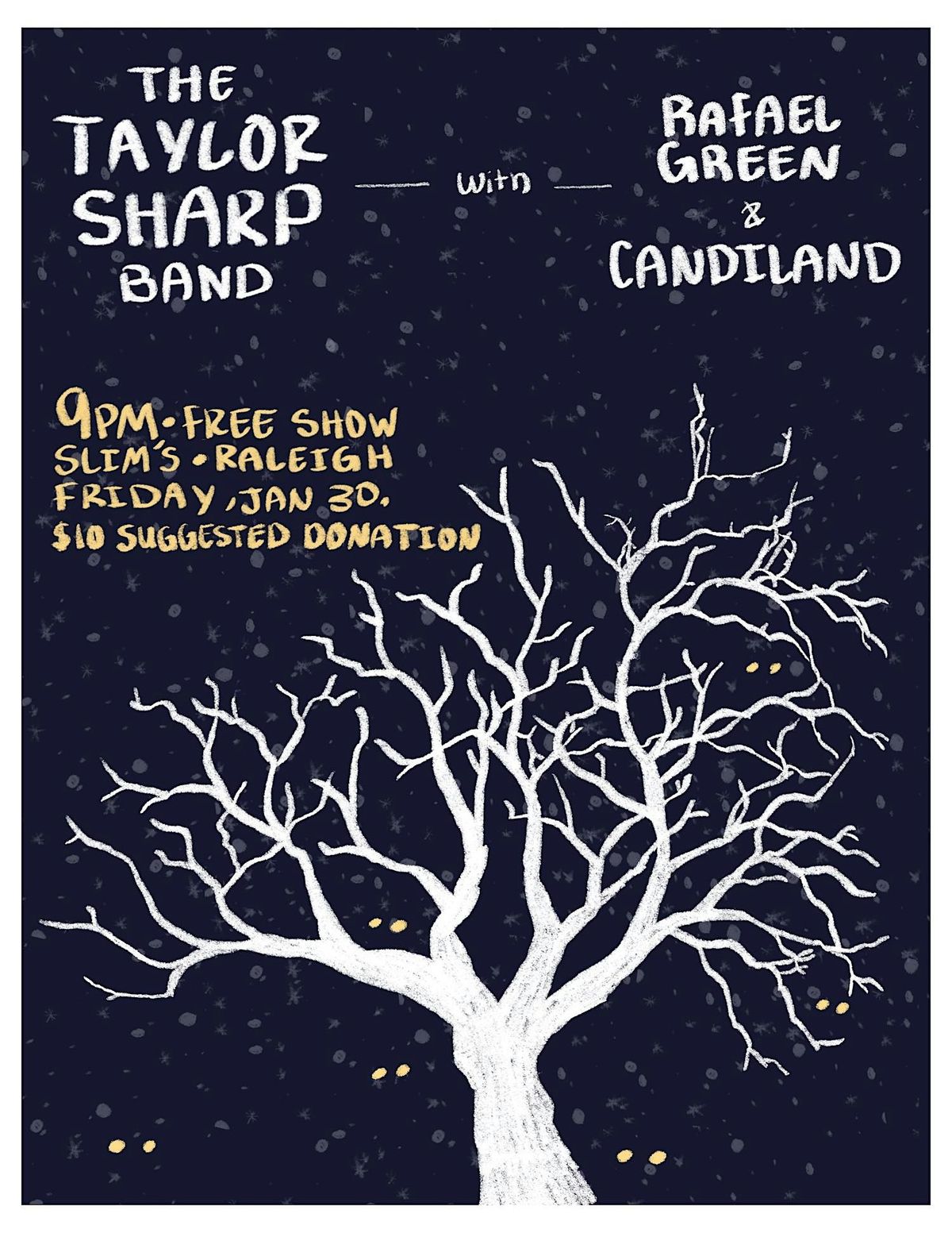 On January 30th, The Taylor Sharp Band, Rafael Green, and Candiland are performing at Slim’s from 9-11pm! The Taylor Sharp Band has a sound that blends 60's psychedelic rock and 90's indie. Rafael Green is a folk singer/songwriter from Nashville. Candiland brings indie folk and alternative rock!