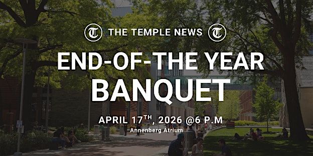 Join The Temple News for our annual End-of-Year Banquet and Awards Ceremony on Friday April 17 from 6 and 8 p.m on Temple University’s Main Campus at Annenberg Atrium. All staff, freelancers, and alumni are welcome. Catering will be provided.