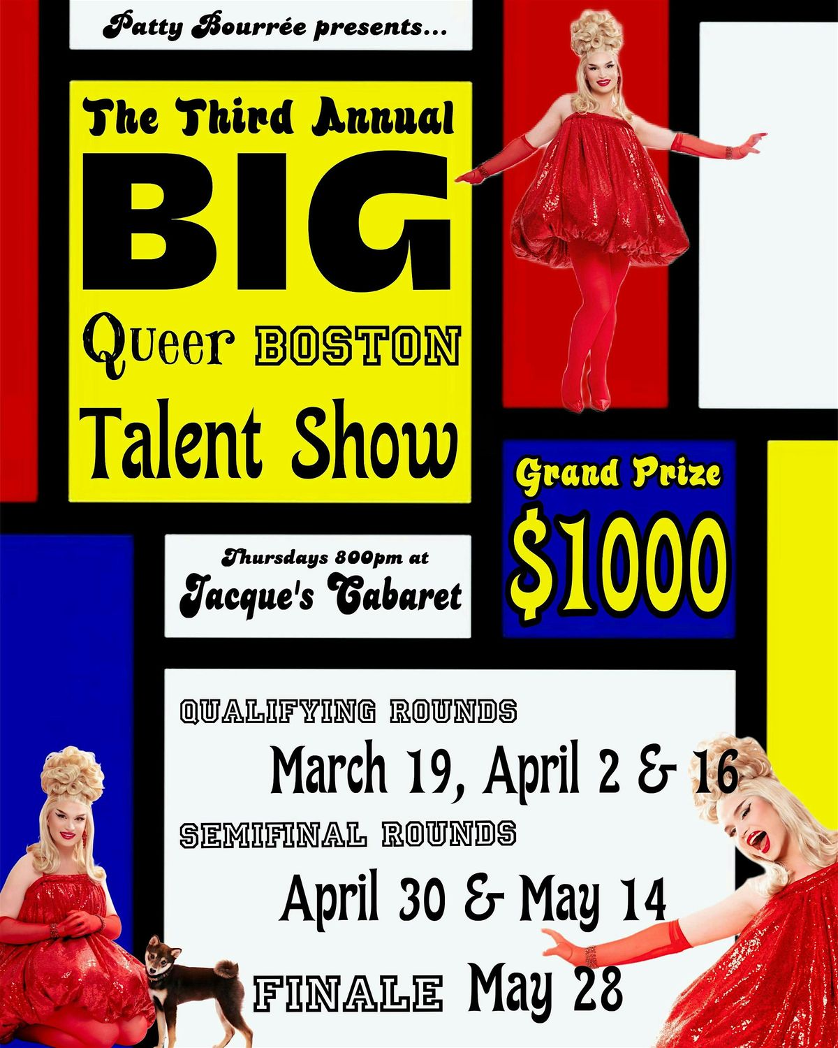 Hosted by Boston drag queen Patty Bourrée and featuring a rotating cast of judges.
