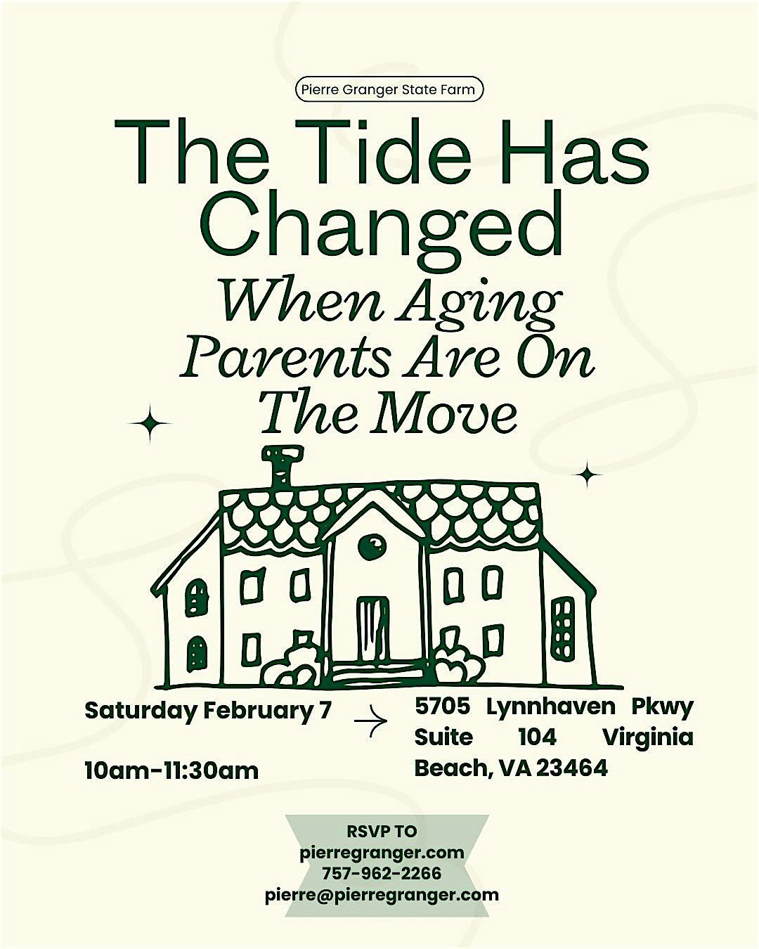 For many families, the shift happens quietly.Aging parents downsize, relocate, or face new health realities — and adult children find themselves stepping into conversations and decisions they never expected to lead.In a place like Tidewater, where movement and transition are part of life, this season feels familiar — and often more complex than it appears.This session is a guided, practical conversation designed to help families step back, understand what’s changing, and think clearly about what tends to come next.This conversation focuses on perspective, awareness, and preparation rather than solutions or services.