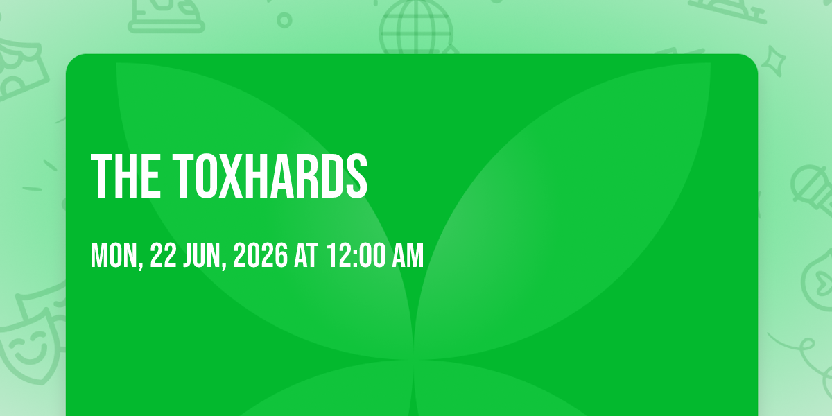 π Location: 40.7222, -73.9867π Welcome to The Toxhards, where dreams come alive and possibilities are endless! ποΈ Join us at Mercury Lounge - New York in the heart of New York, NY for an event that defies expectations. π On June 22nd, 2026 at 12:00 AM, be part of something truly extraordinary as we bring together innovation, entertainment, and pure magic. β¨ Every aspect has been carefully designed to ensure an unforgettable experience for all our guests. Whether you're seeking adventure, inspiration, or simply a break from the ordinary, this event promises to deliver beyond your wildest dreams. π Prepare for a journey into the extraordinary!