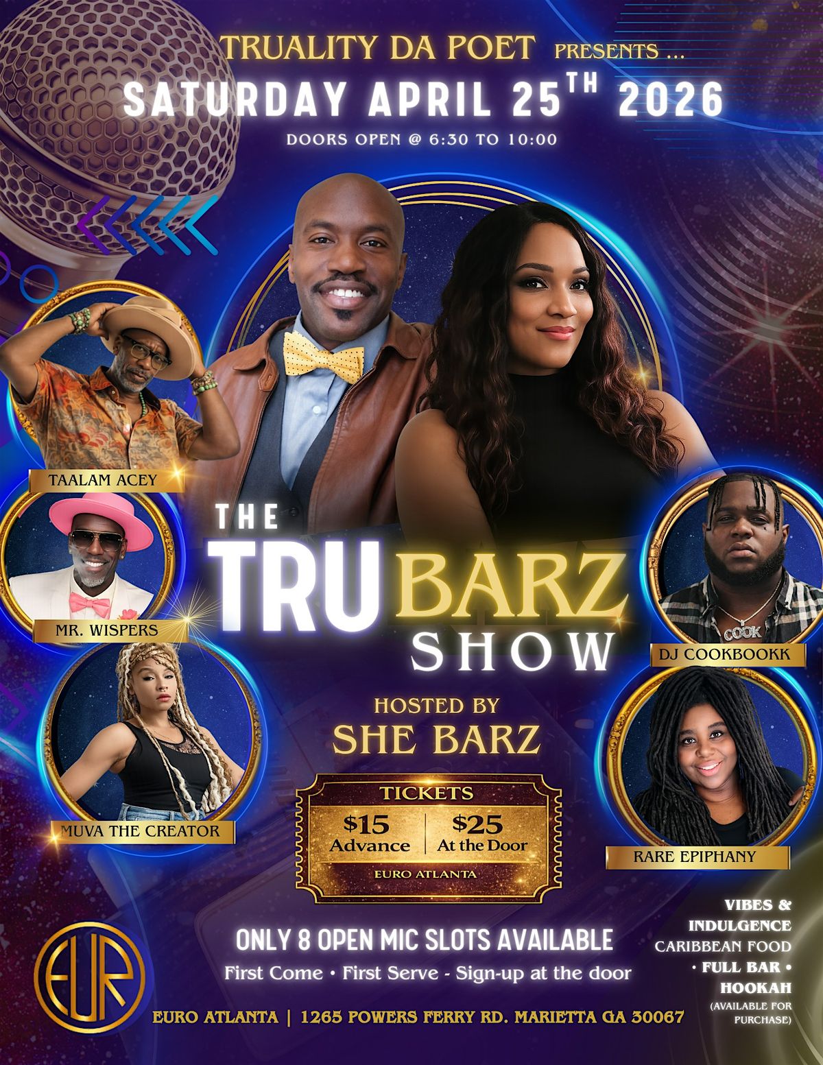 The TRU BARZ Show is a collection of truth spitting legendary messengers with an open mic list of 8 poets that go on before the features.About this Event