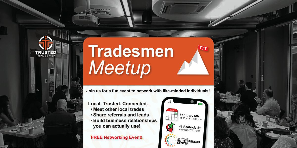 Join us at the Nashville Entrepreneur Center for our monthly gathering of skilled tradesmen and women. This is a fantastic opportunity to network, share tips and tricks of the trade, and build connections with other professionals in the industry.