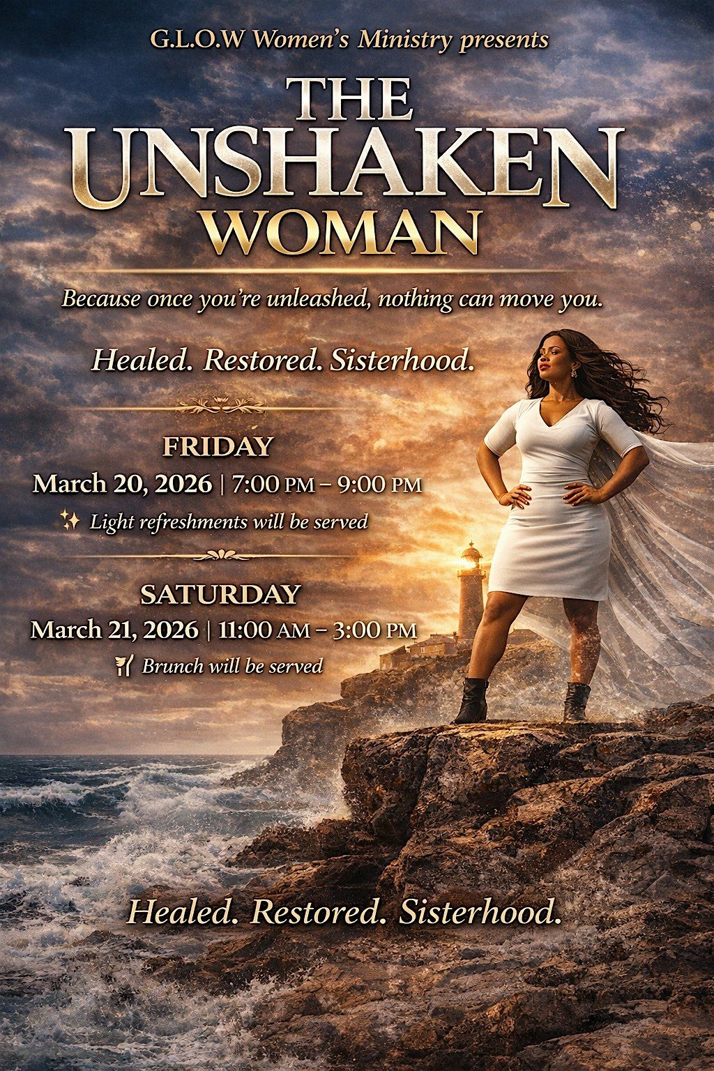 The Unshaken Woman Conference is a powerful two-day experience designed to empower, restore, and strengthen women in every season of life. This gathering is centered on healing, sisterhood, and stepping fully into the woman God has called you to be — unshaken, unwavering, and unapologetic.