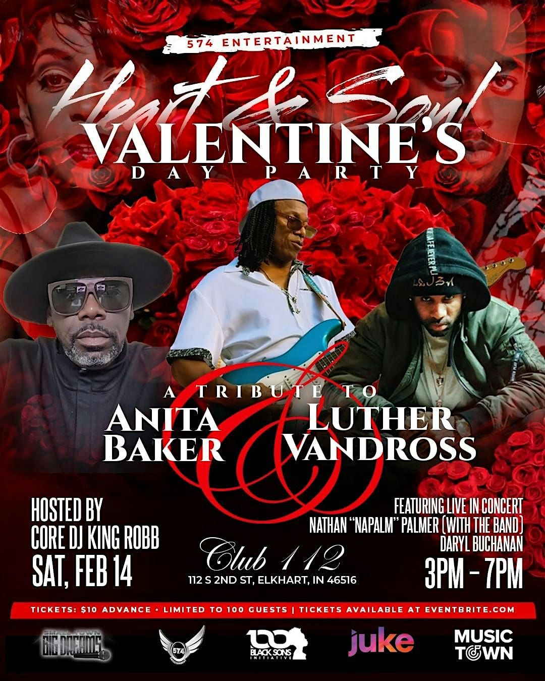 join us on Saturday Feb 14th 2026 live from Club 112 as we celebrate Valentines Day with a tribute to the legendary singers Luther Vandross & Anita Baker, featuring a live performance from Daryl Buchanan & Nathan NaPalm Palmer. Hosted by Core Dj King Robb & Music Town