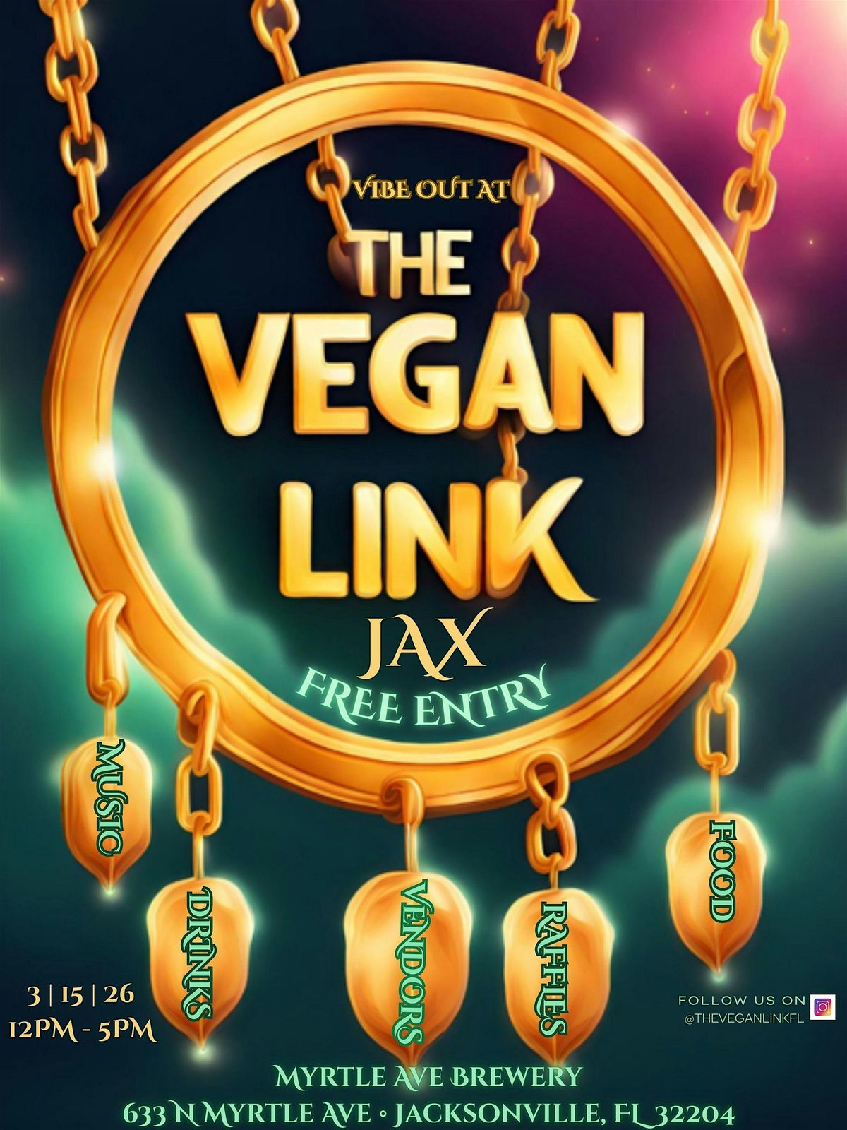 We’re back DUUVVALLLL! March 15th will be our 1st Vegan Link of 2026 and we are elated to be back! Join us for a fun-filled day at our favorite brewery…….Myrtle Ave Brewery for The Vegan Link - JAX Edition as we celebrate plant-based living! Expect all-vegan/vegan-friendly vendors, FOOD, drinks, cruelty-free products, eco-conscious brands, live DJ, giveaways/raffles, art and more! Bring your friends, family, and appetite! Whether you're plant-based, vegan, vegan-curious, or just love a good market vibe—this is for YOU!