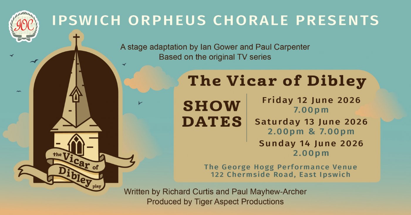Ipswich Orpheus Chorale Inc presents The Vicar of Dibley, a stage adaptation by Ian Gower & Paul Carpenter, based on the TV series by Richard Curtis & Paul Mayhew-Archer.