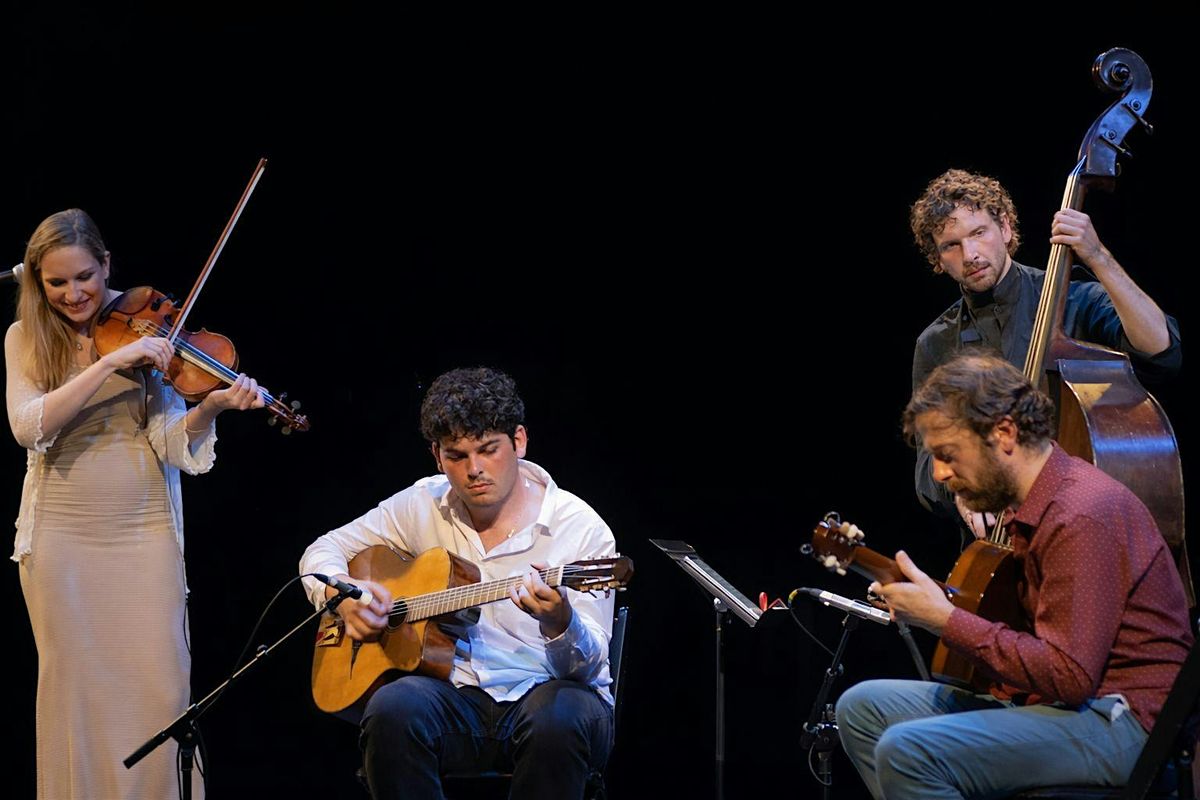 Award-winning violinist Eva Slongo and guitarist Jimmy Grant present an intimate and swinging duo rooted in the gypsy jazz tradition of Django Reinhardt and Stéphane Grappelli. Their music draws equally from European jazz, Eastern European folk influences, and classic vocal jazz, resulting in a sound that feels both timeless and accessible to modern audiences.