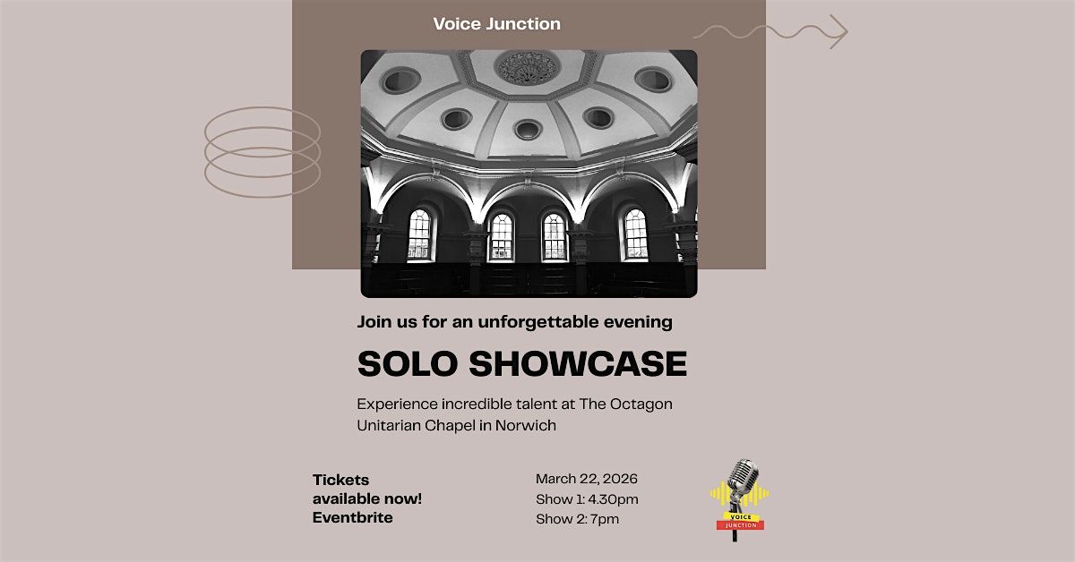 Welcome to The Voice Junction Solo Showcase 1 happening at Octagon Unitarian Chapel on March 22, 2026 at 4:30 PM (Europe/London). Get ready for an evening filled with amazing solo performances that will leave you in awe! Join us for a night of talent, music, and unforgettable moments. Don't miss out on this opportunity to witness some incredible vocal performances in a beautiful historic setting. Mark your calendars and we'll see you there!
