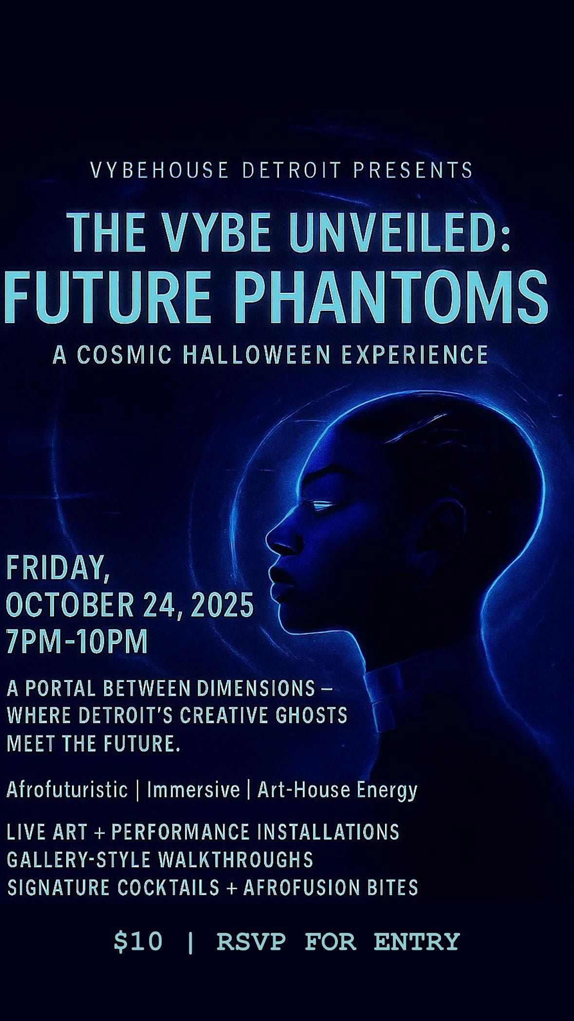 VybeHouse was born from a vision: to create a space where creativity, culture, and technology collide to inspire people to visualize themselves better every day. Detroit has always been a city of innovation and resilience, and VybeHouse continues that legacy by transforming a historic space into an Afrofuturistic incubator for art, performance, and community connection.