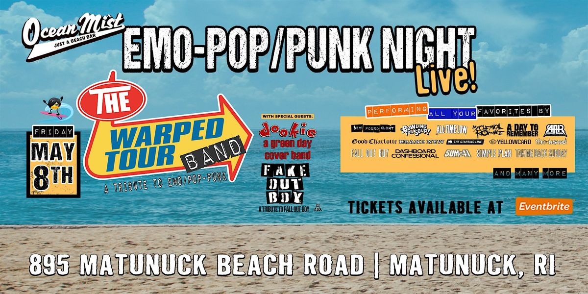 Get ready for an epic night in person with THE WARPED TOUR BAND at the cool and cozy The Ocean Mist. This is your chance to catch all the energetic vibes and killer tunes up close and personal. Bring your friends, rock out, and make memories you won’t forget!