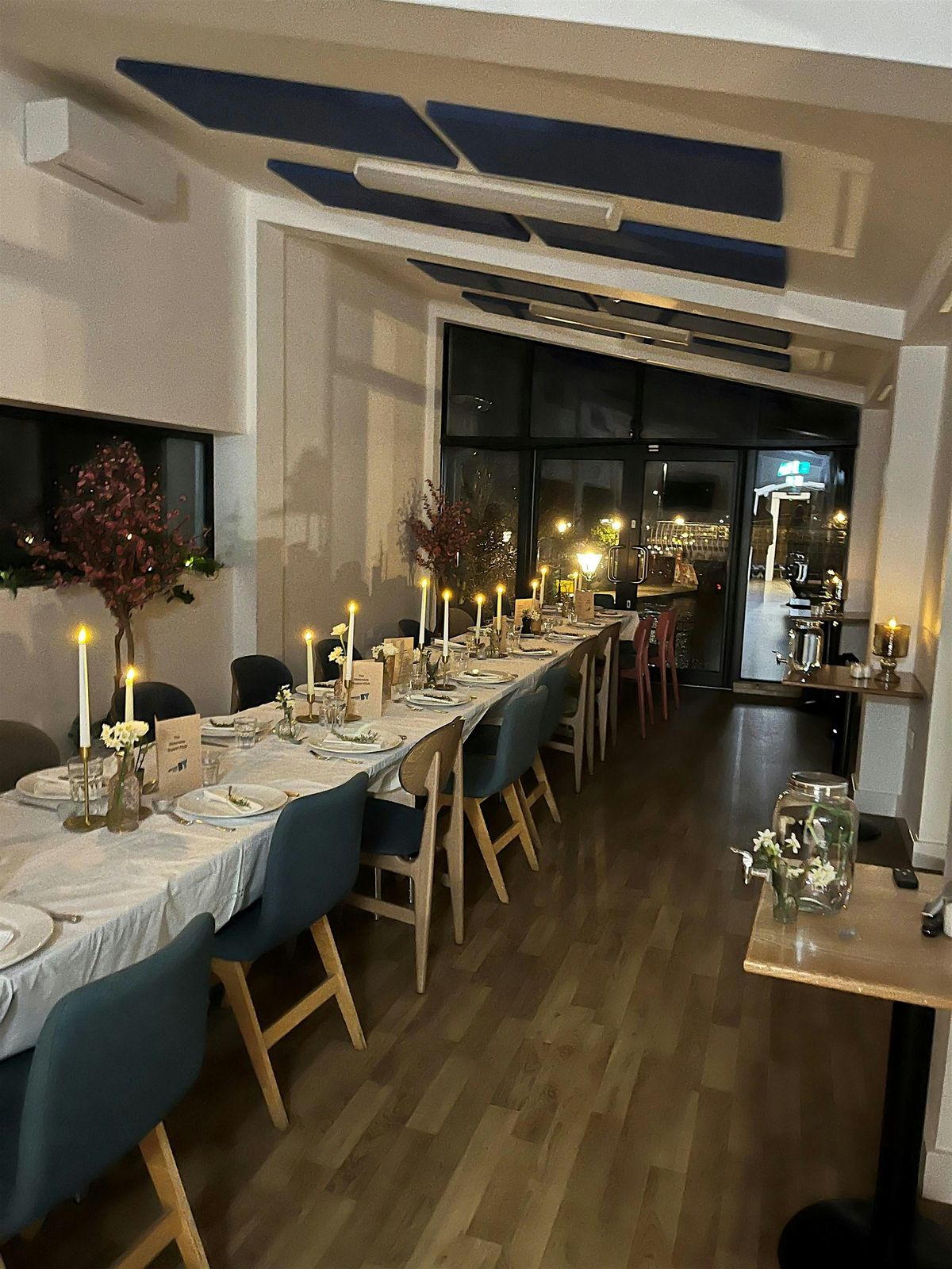 Each event features a seasonal menu designed and cooked by Sal, a South African-born home cook. Her mission is to get everyone to eat a more varied diet – and more vegetables every day. Sal’s food is vibrant, flavour-led and largely vegetarian, celebrating fresh ingredients and sustainable eating without fuss or formality. Sarah hosts the evening front-of-house, creating a relaxed, welcoming atmosphere where guests can settle in, meet new people or simply unwind with friends.