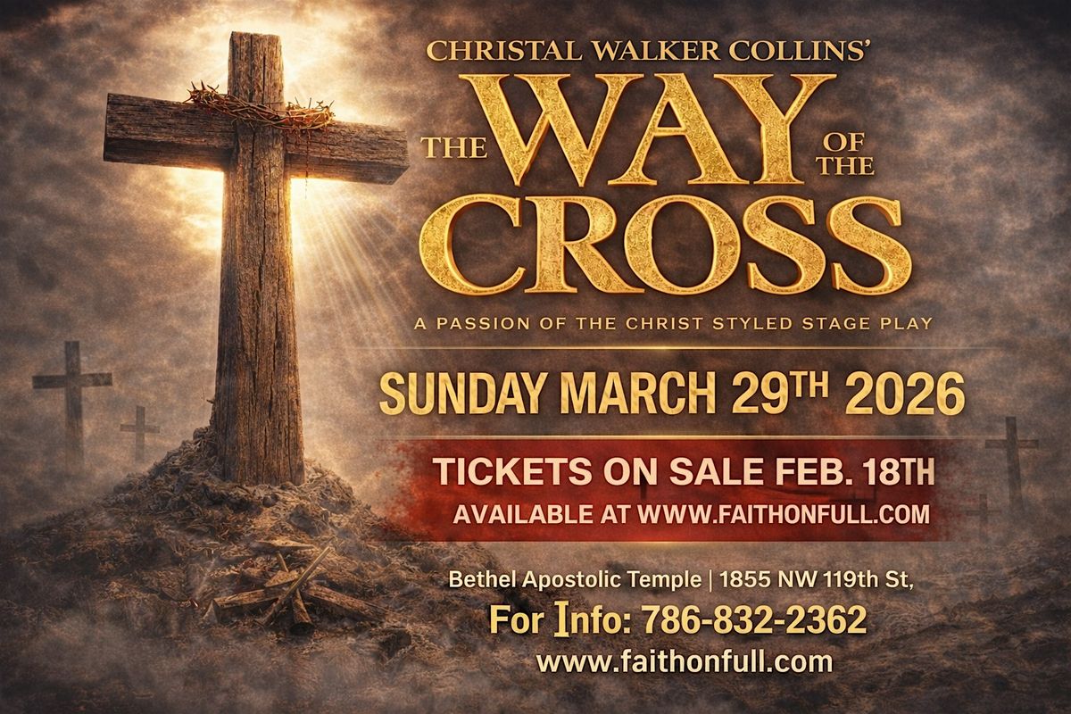 From the producer who brought you “Love Equals An Empty Tomb”, get your tickets for Christal Walker Collin’s “The Way of the Cross,” a passion of the Christ-styled stage play, Sunday, March 29th, 5:00 pm at Bethel Apostolic Temple in Miami—featuring a stellar line up of captivating recording artists, dancers, and theatrical performance…and returning to the stage, Master Storyteller herself, Christal Walker Collins. This will surely be an evening you don’t want to miss.