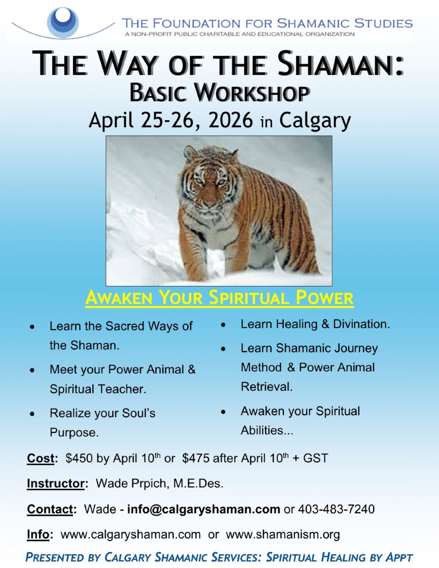 For more info see: https://calgaryshaman.com/uploads/3/4/6/3/34637156/poster_basic_workshop_calgary_april_25-26__2026.pdf